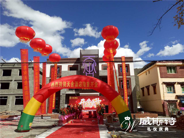 3.懸掛彩帶、宮燈,在醒目處擺放來客贈送的花籃、牌匾、空飄氣球等。如:在大門兩側(cè)各置中式花籃20個,花籃飄帶上的一條寫上“熱烈慶?!痢灵_業(yè)慶典”字樣,另一條寫上慶賀方的名稱。正門外兩側(cè),設充氣動畫人物、空中舞星、吉祥動物等。